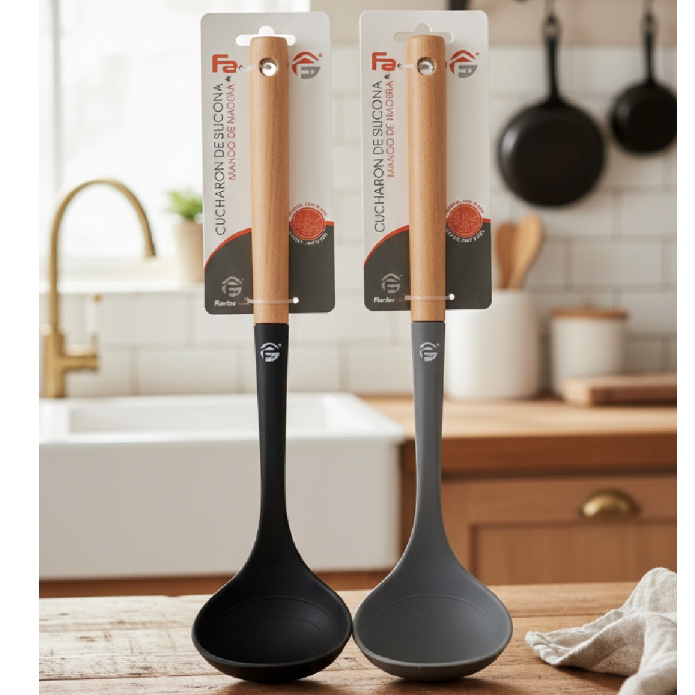 Cucharón de silicona con mango de madera