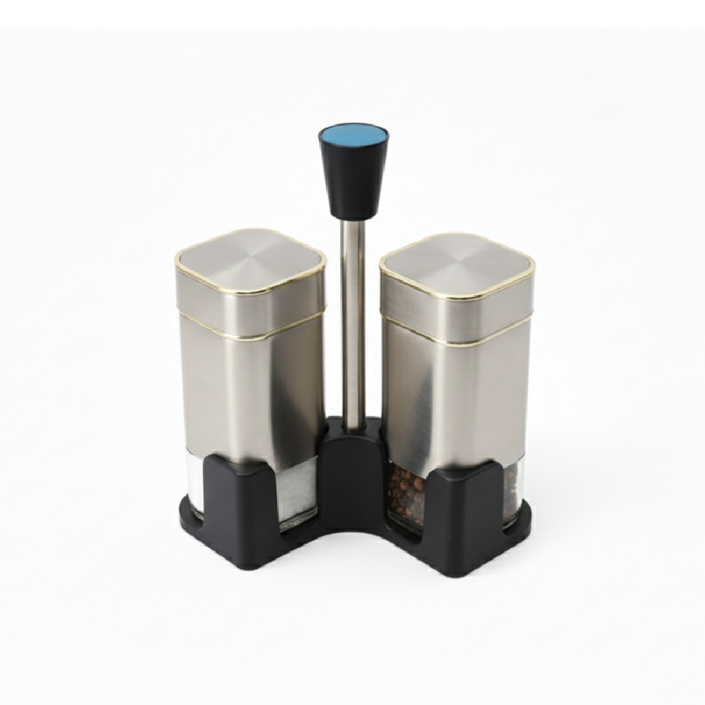 Este es un salero o pimentero de mesa diseñado para ser tanto funcional como decorativo.