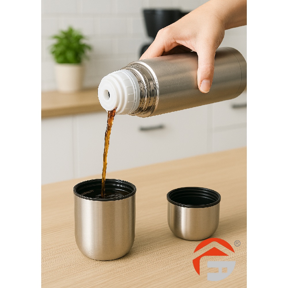 Diseñado para acompañarte en cada jornada, este elegante termo de acero inoxidable combina funcionalidad y estilo. Su estructura cilíndrica y acabado metálico le dan un toque moderno y resistente, ideal para quienes buscan practicidad sin sacrificar estética.